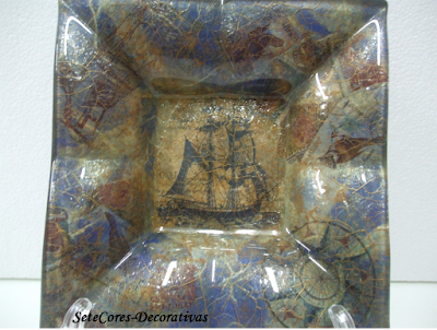 Prato Quadrado 4 bicos "Caravela" para decoração