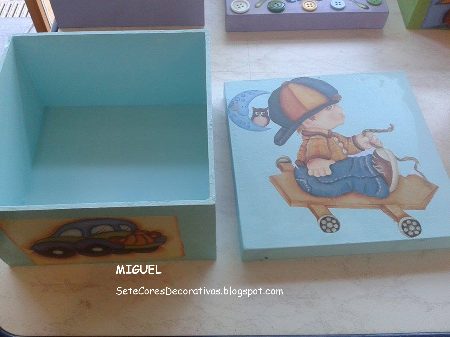 Dia 19 - "A CAIXA DOS SEGREDOS" - Pintura de uma caixa em madeira, com decoração ao gosto de cada um. Nestas idades as crianças gostam de guardar o que lhes é mais querido, nem que seja um simples rebuçado dado por um amigo(a). Ficaram muito giras